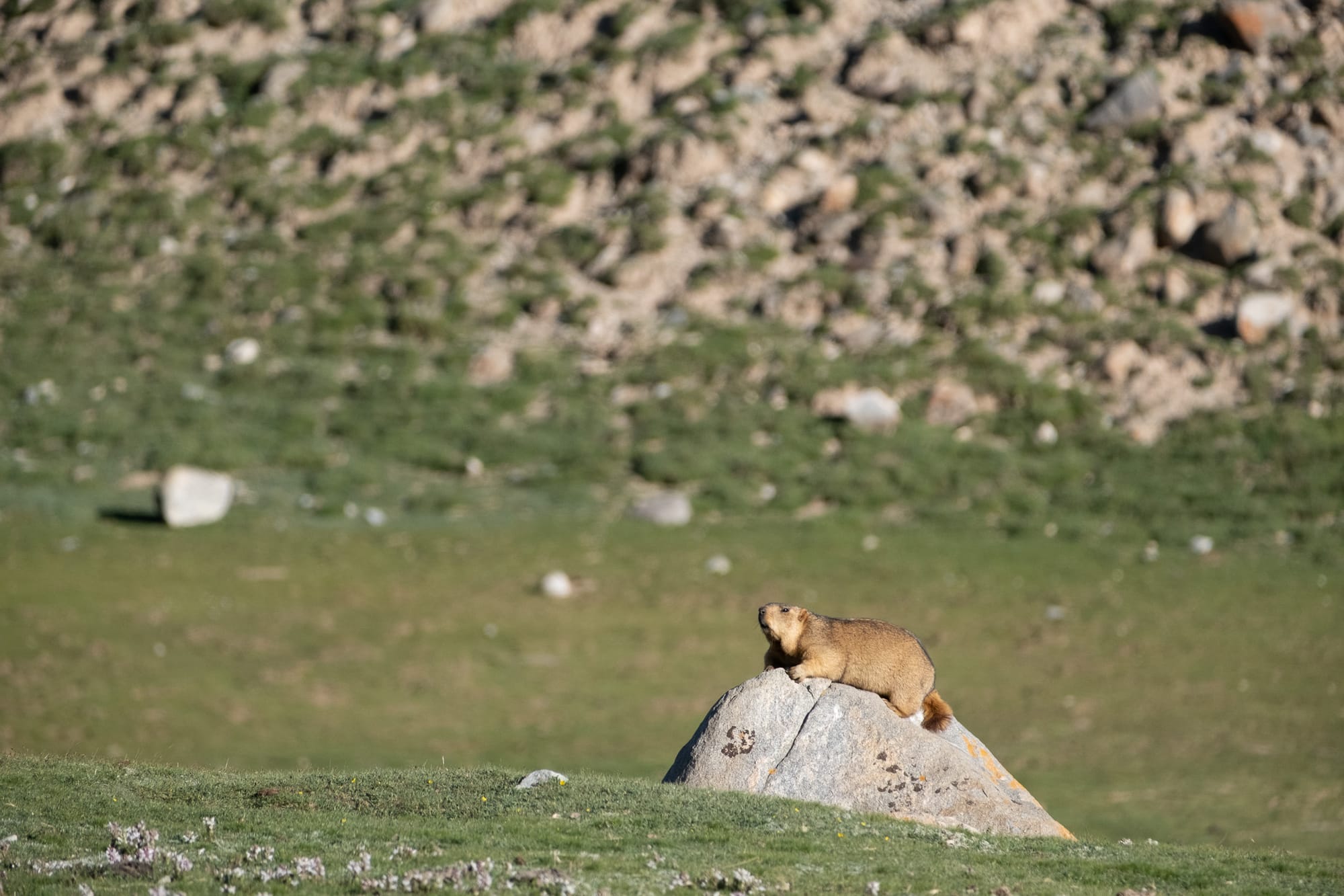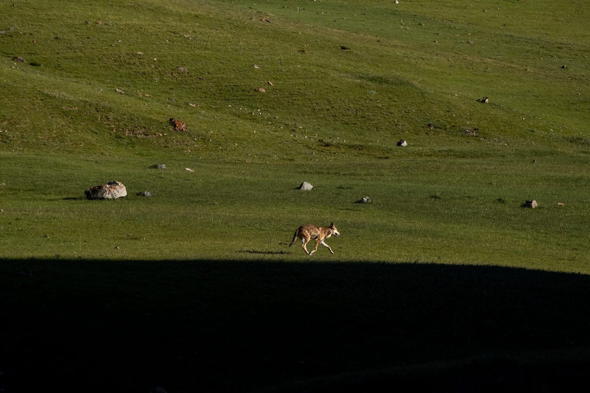 Currently, Sanjiangyuan National Park prohibits all entry, except for rangers and local herders. However, there are still excellent opportunities to see them on the Park's fringe. We learned from the Tibetan ranger that snow leopards tend to frequent one of the valleys, particularly around dusk. Their impeccable camouflage makes them extremely difficult to spot, even when staring directly at one. On that afternoon, 29th July 2025, when the sun was shining on the mountain slope at almost a 45-degree angle, we heard through the car radio that our guide had spotted a snow leopard moving up to the mountain top. What follows will stay with me for the rest of my life: a lone individual casually walking up the slopes and taking a nap. We were lucky to be able to see it just chilling there for over an hour, until it got up and slowly walked over the hill.
